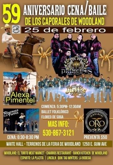 ¡Cena-Baile! 59 Aniversario De Los Caporales De Woodland Con Los Príncipes Del Pacifico y Mucho Más!- Terrenos de la Feria de Woodland, CA