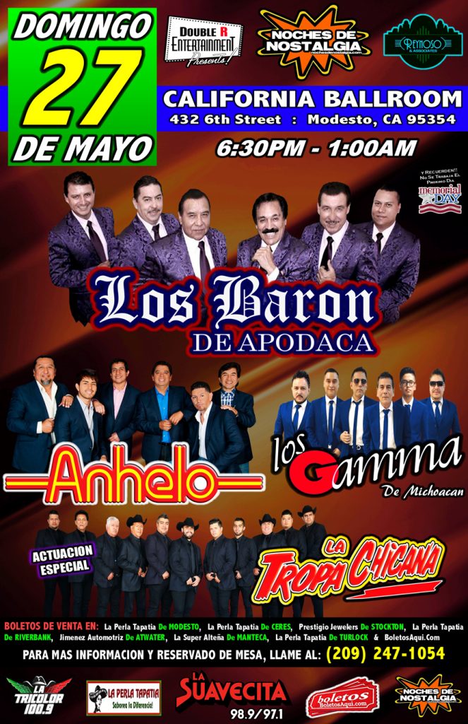 Los Baron de Apodaca, Anhelo, Los Gamma de Michoacan y la Actuacion Especial de La Tropa Chicana - California Ballroom de Modesto, CA