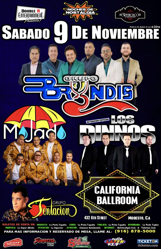 Grupo Bryndis, Grupo Mojado, Grupo Tentacion y la actuacion especial de Los Dinnos - California Ballroom - Modesto, CA