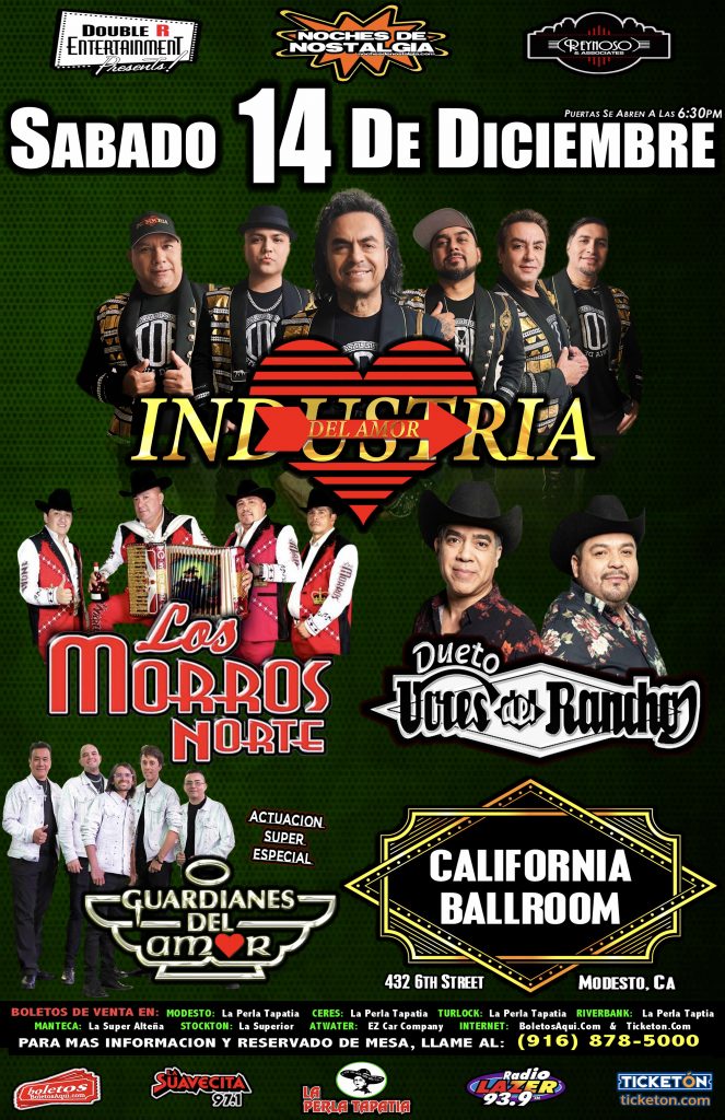 Industria del Amor, Los Morros del Norte, Duetos Voces del Rancho y la actuacion especial de Guardianes del Amor - California Ballroom, Modesto, CA