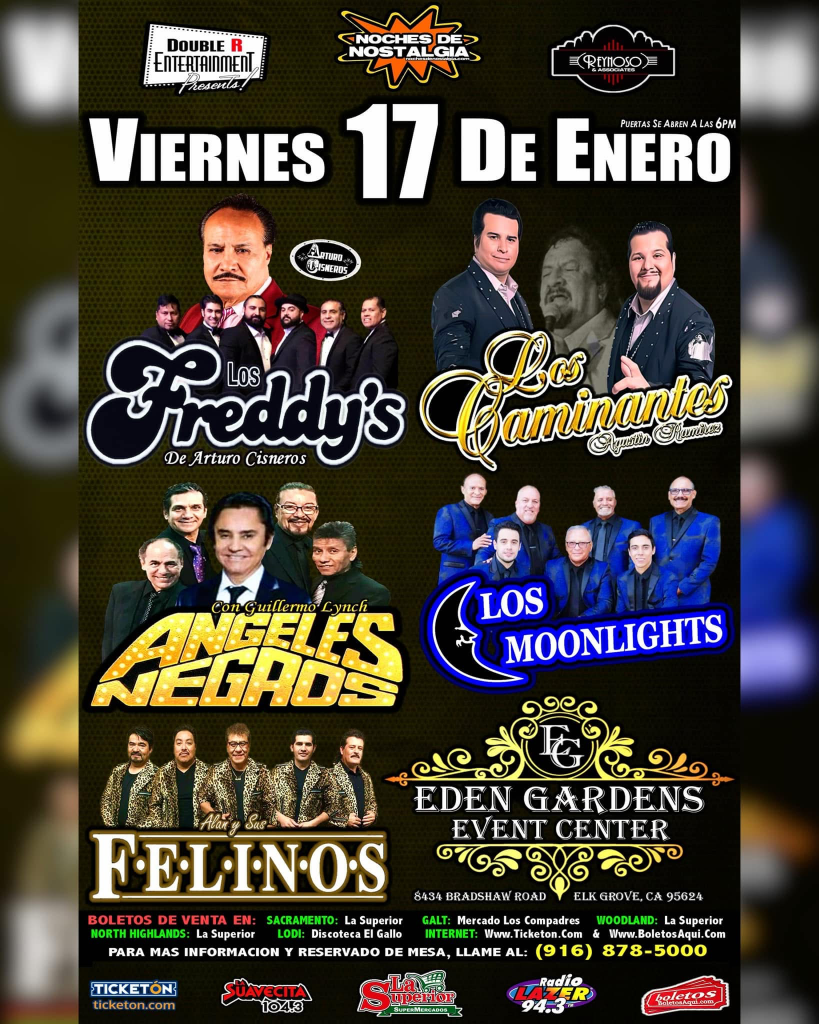 Los Freddy's, Los Caminantes, Angeles Negros, Los Moonlights y Los Felinos - Eden Gardens Event Center - Elk Grove, CA