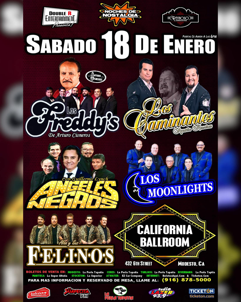 Los Freddy's, Los Caminantes, Angeles Negros, Los Moonlights y Los Felinos - California Ballroom - Modesto, CA